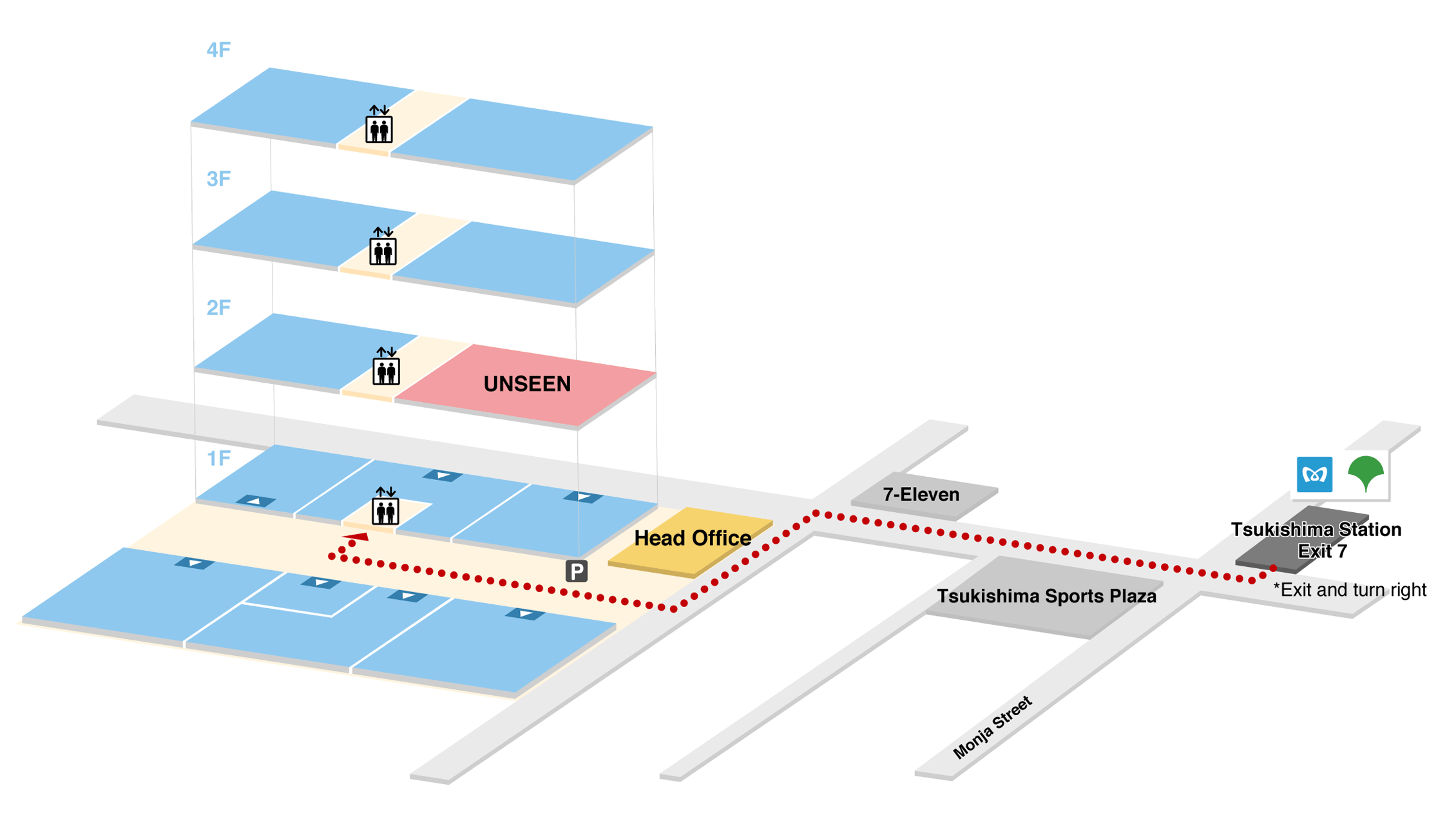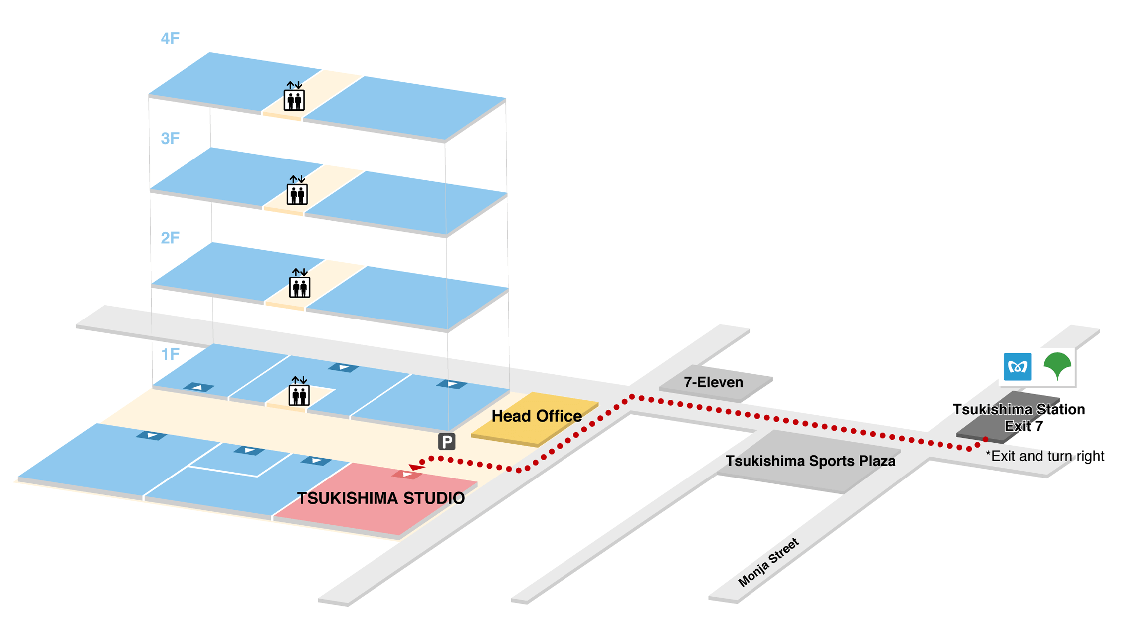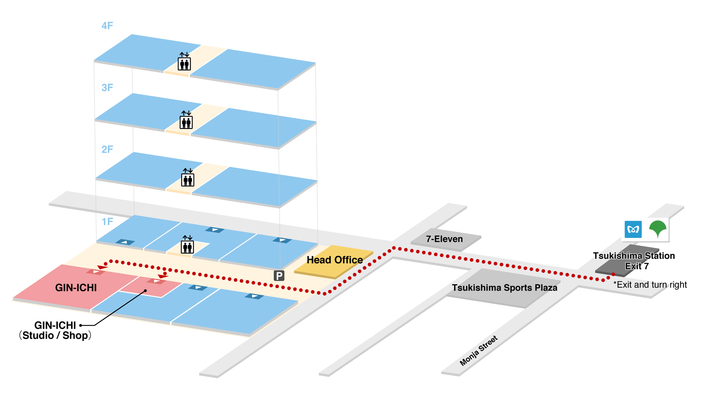 get off at Tsukishima Station. Three minutes on foot from Exit 7.