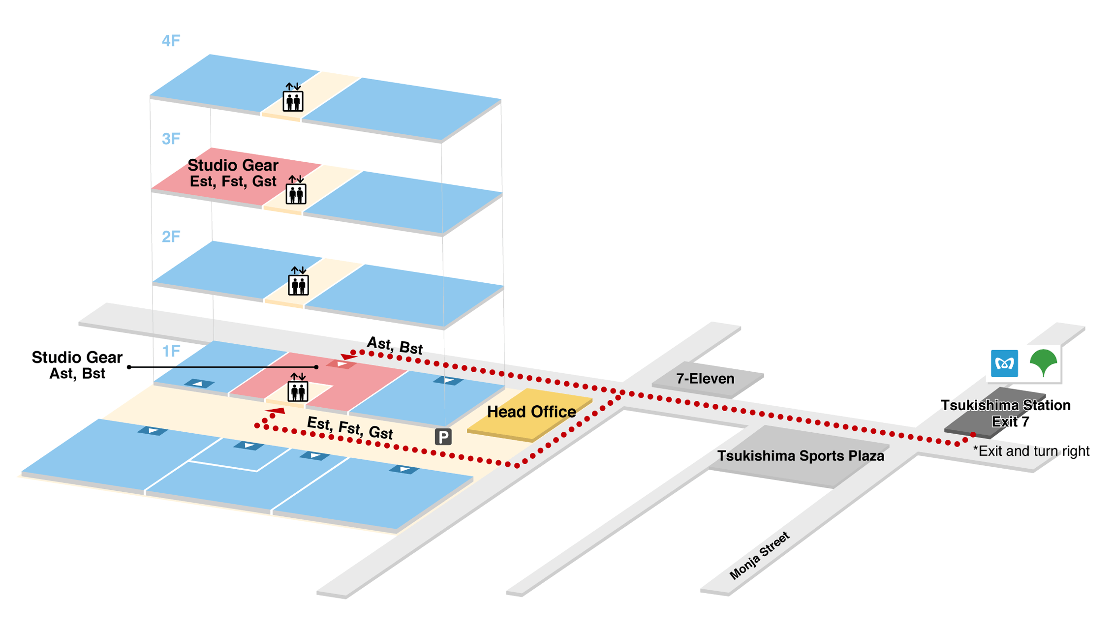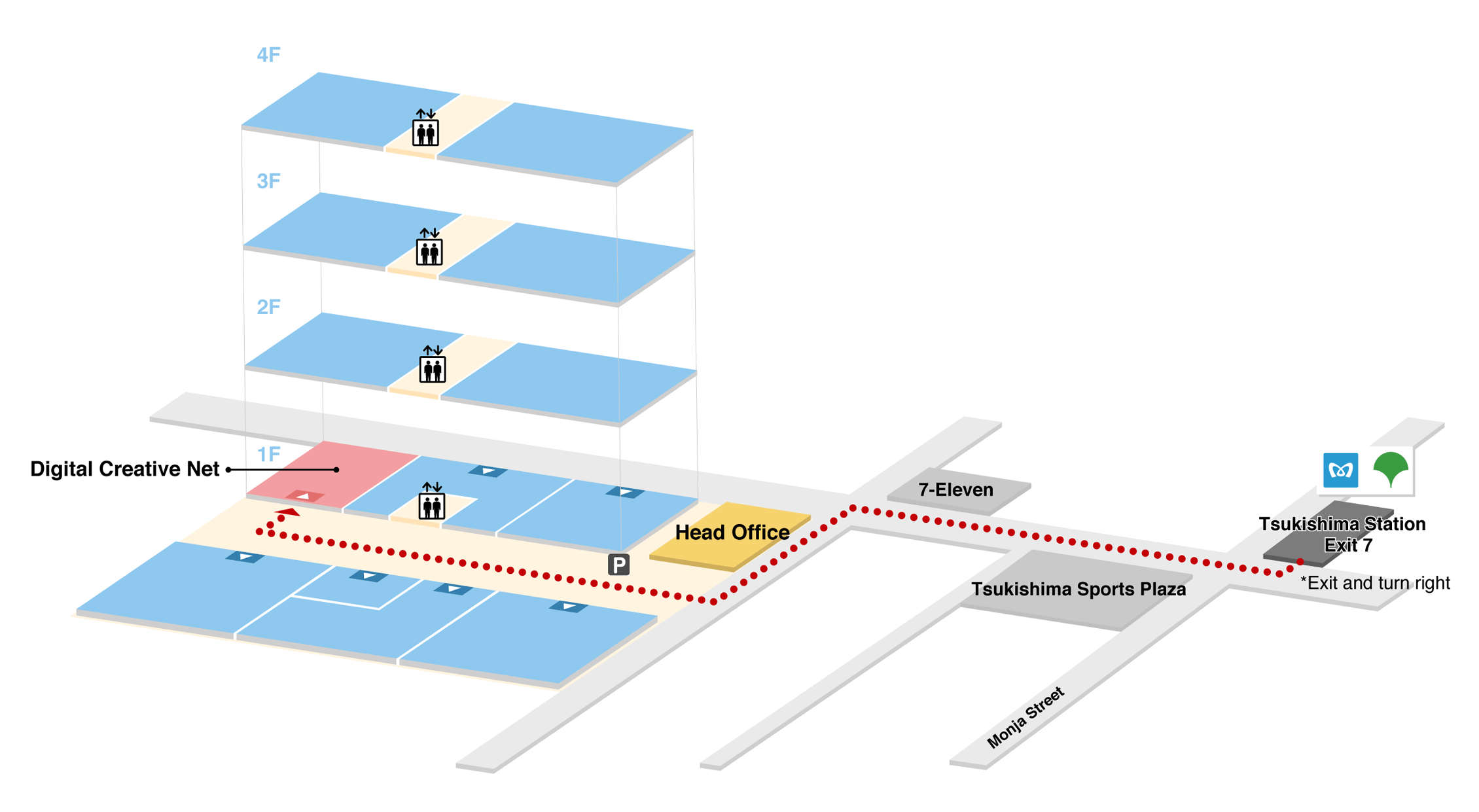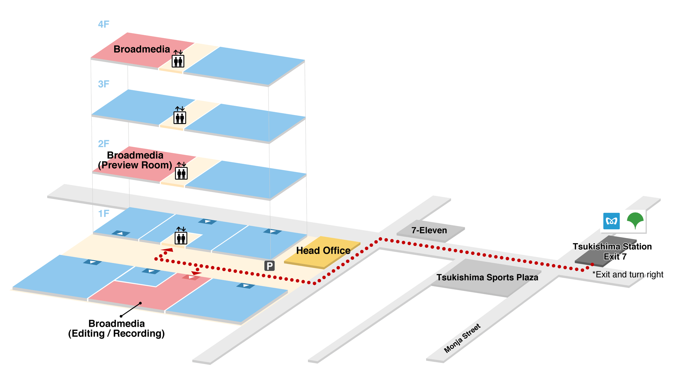 get off at Tsukishima Station. Three minutes on foot from Exit 7.