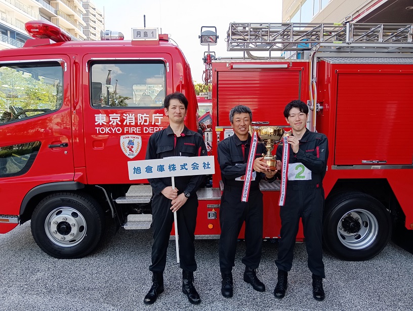 東京消防庁 臨港消防署で開催された『令和6年度自衛消防活動審査会』におきまして、旭倉庫自衛消防隊3名が見事なコンビネーションの素晴らしい操法を行い優勝致しました。